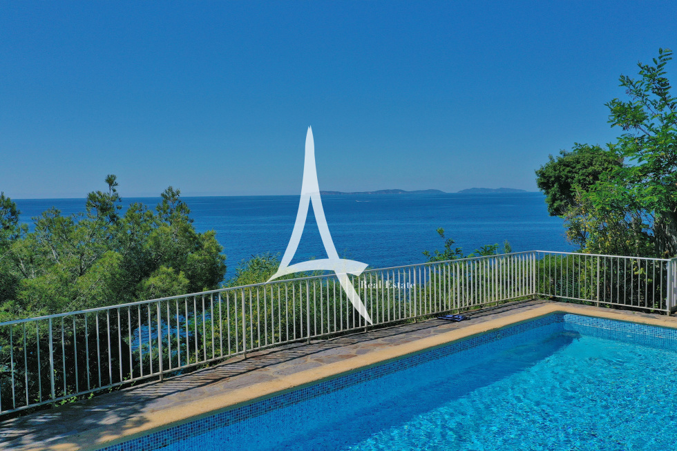 Emplacement unique pour cette authentique propriété des années 1960 posée en front de mer. Sa vue mer époustouflante à 190 degrés, vous permet de contempler le Cap Lardier, comme les Iles d’or, ou la Baie de Cavalaire. Cette villa d’environ 210 m² sur 2 niveaux, comprend, une entrée, un salon /salle à manger avec cheminée, une cuisine indépendante, huit chambres et trois salles de bain/douche. La piscine axée en front de mer, est entourée de jolies terrasses. Le jardin est complanté d'essences méditerranéennes, avec de beaux sujets procurant une ombre naturelle pour cette exposition plein Sud. Vous disposez d’un garage fermé (20 m²) en annexe. Beaucoup de charme pour cette propriété de famille rarissime, avec vue magistrale sur la grande bleue de toutes les pièces, où l’atmosphère appelle à de multiples et agréables évasions, et quelques marches privées pour se baigner dans une crique de sable fin. Les informations sur les risques auxquels ce bien est exposé sont sur : www.georisques.gouv.fr Ce bien est situé dans une zone soumise à l'obligation de débrousaillement.
