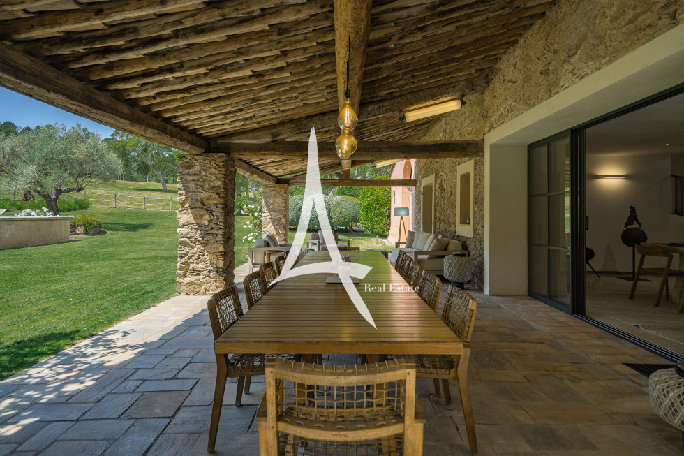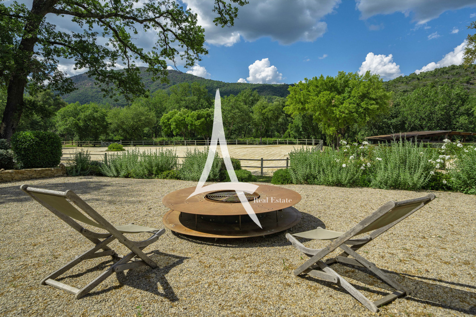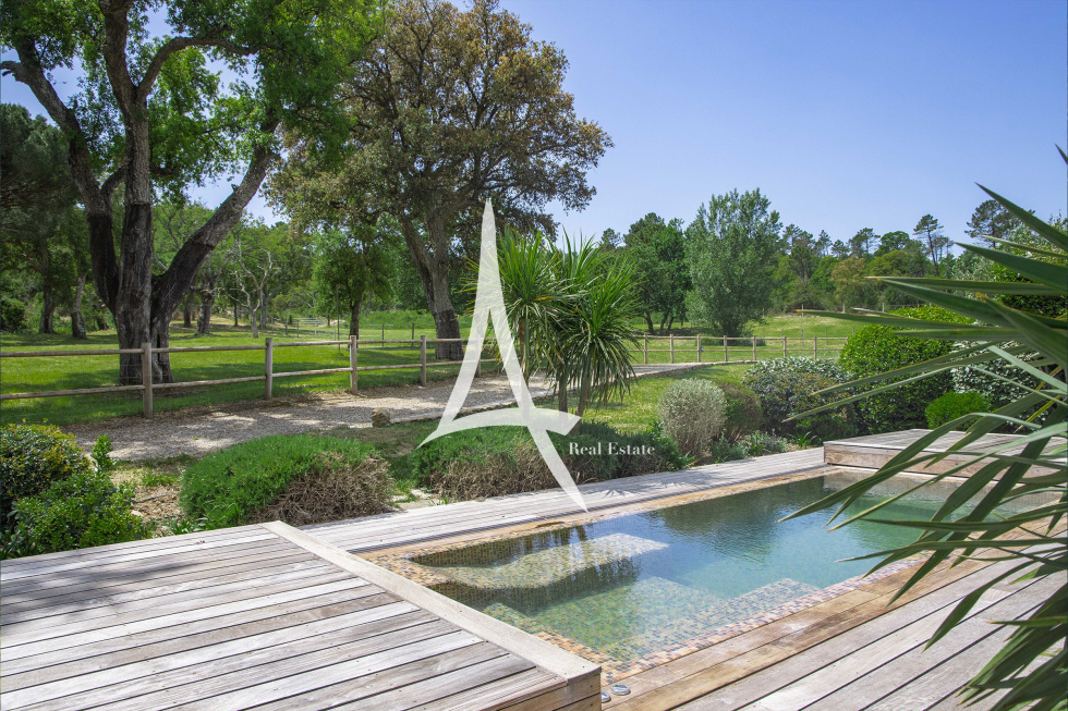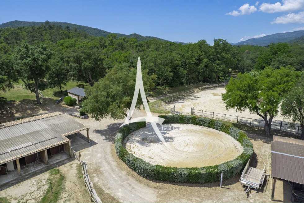 Située sur la presqu'île de Saint-Tropez, cette propriété de 18 hectares est un havre de paix où luxe, nature et confort se conjuguent à la perfection. Avec ses vastes espaces de vie, ses 9 chambres et ses équipements haut de gamme, elle est idéale pour une grande famille à la recherche d'une situation exceptionnelle avec une vue à 360 degrés sur les collines de la vallée. La résidence principale de 700 m2 offre de superbes volumes et une élégance intemporelle. En rez-de-jardin, les espaces de réception sont conçus pour le partage et la convivialité : un salon traversant avec cheminée et hauts plafonds, une vaste salle à manger et une grande cuisine familiale. L'ensemble s'ouvre sur une terrasse couverte aménagée en salle à manger extérieure, avec coin barbecue et four à pain, offrant un espace idéal pour les repas en famille. Le premier étage est dédié à l'intimité et au confort, avec une magnifique suite parentale comprenant une salle de bains et un dressing, ainsi que trois autres chambres, chacune avec sa propre salle d'eau. Une partie de la maison avec un accès indépendant supplémentaire abrite un salon, une cuisine et trois chambres avec une piscine à débordement et un jacuzzi. Le logement du personnel, avec un salon, une cuisine et une chambre avec buanderie, assure un service discret et efficace. Une charmante petite dépendance abrite une chambre avec terrasse privée. Pour les passionnés d'équitation, la propriété dispose également d'installations équestres rares autour de Saint-Tropez : 11 stalles, un manège, un club-house climatisé et 14.000 m² de paddocks en herbe avec abreuvoirs automatiques. Pour les amateurs de voitures : les 2 garages peuvent accueillir jusqu'à cinq véhicules. Pour les épicuriens : un potager de 180m² avec puit, au pied de la cuisine et entièrement clos en murets de pierre sèche. Une vaste oliveraie AOC dispose d’une centaine de pieds. L'atout majeur de cette demeure d'exception est son système d'irrigation existant, alimenté par le Canal de Provence, garantissant un arrosage peu coûteux tout au long de l'année. Avec ses nombreuses prairies, ses espaces de vie spacieux et ses prestations luxueuses, cette propriété est parfaite pour une grande famille à la recherche d'un cadre prestigieux et naturel à proximité de Saint-Tropez. Plages à 20 minutes.