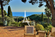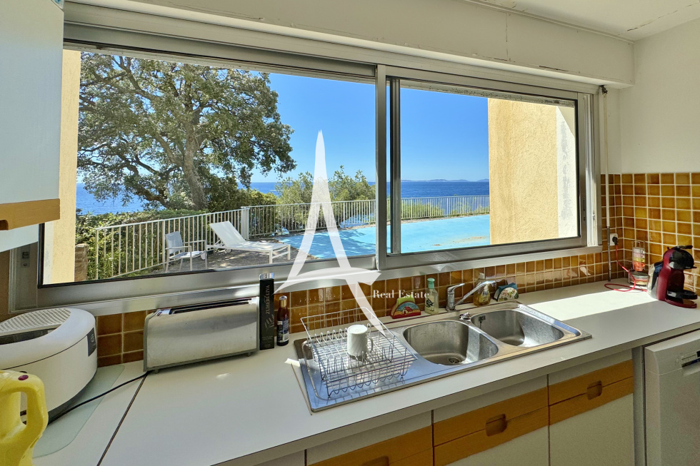 Emplacement unique pour cette authentique propriété des années 1960 posée en front de mer. Sa vue mer époustouflante à 190 degrés, vous permet de contempler le Cap Lardier, comme les Iles d’or, ou la Baie de Cavalaire. Cette villa d’environ 210 m² sur 2 niveaux, comprend, une entrée, un salon /salle à manger avec cheminée, une cuisine indépendante, huit chambres et trois salles de bain/douche. La piscine axée en front de mer, est entourée de jolies terrasses. Le jardin est complanté d'essences méditerranéennes, avec de beaux sujets procurant une ombre naturelle pour cette exposition plein Sud. Vous disposez d’un garage fermé (20 m²) en annexe. Beaucoup de charme pour cette propriété de famille rarissime, avec vue magistrale sur la grande bleue de toutes les pièces, où l’atmosphère appelle à de multiples et agréables évasions, et quelques marches privées pour se baigner dans une crique de sable fin. Les informations sur les risques auxquels ce bien est exposé son sur : www.georisques.gouv.fr Ce bien est situé dans une zone soumise à l'obligation de débrousaillement.