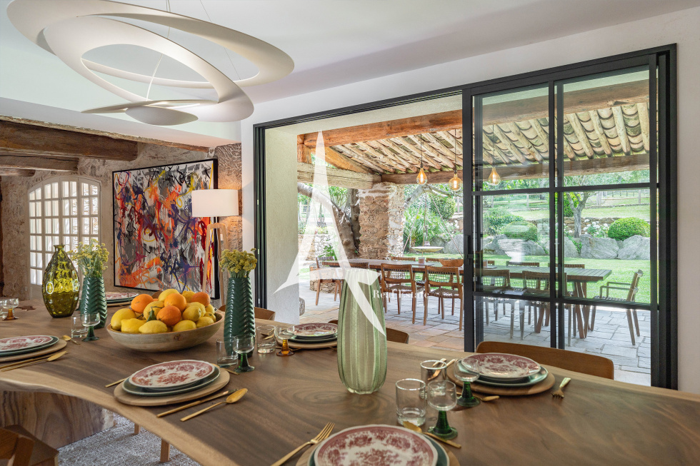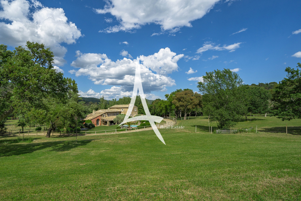 Située au cœur de la presqu’île de Saint-Tropez, dans un environnement naturel exceptionnellement préservé, cette propriété équestre rare de 18 hectares constitue l’un des derniers grands domaines privés disponibles dans ce secteur particulièrement recherché de la French Riviera. Véritable havre de paix dominant les paysages environnants, elle offre une vue panoramique spectaculaire sur la vallée et les collines méditerranéennes dans une atmosphère de calme absolu. Développant environ 700 m² habitables, 9 suites, la résidence principale séduit par l’élégance de ses volumes et la qualité de son implantation au cœur du domaine. Les espaces de réception traversants comprennent un vaste salon avec cheminée et hauts plafonds, une salle à manger spacieuse ainsi qu’une grande cuisine familiale ouverte sur une terrasse couverte aménagée en salle à manger extérieure avec barbecue et four à pain, créant un cadre idéal pour recevoir en toute convivialité. À l’étage, la suite principale bénéficie d’un dressing et d’une salle de bains complète, accompagnée de plusieurs chambres supplémentaires disposant chacune de leur salle d’eau, offrant confort et indépendance dans un esprit de maison familiale de prestige au cœur de la Saint-Tropez peninsula. Une aile indépendante accueille un second espace de vie comprenant salon, cuisine et plusieurs chambres, complété par une piscine à débordement et un jacuzzi permettant de recevoir famille et invités dans des conditions d’autonomie particulièrement recherchées sur la French Riviera. Une dépendance supplémentaire ainsi qu’un logement de personnel indépendant complètent harmonieusement l’ensemble. Pensée pour les passionnés d’équitation, la propriété dispose d’installations rares dans la région comprenant 11 stalles, une carrière centrale, un club-house climatisé et plus de 14 000 m² de paddocks en herbe irrigués par le Canal de Provence garantissant un confort optimal aux chevaux toute l’année. Les extérieurs révèlent un art de vivre provençal authentique avec un potager de 180 m², une oliveraie AOC d’une centaine d’arbres, de vastes prairies et un système d’irrigation performant, composant un environnement parfaitement adapté à une résidence familiale de prestige ou à un projet de domaine privé confidentiel. À seulement vingt minutes des plages et du centre du village de Saint-Tropez, cette propriété constitue une opportunité exceptionnelle d’acquérir une luxury equestrian estate Saint-Tropez peninsula au cœur d’un domaine naturel rare sur la French Riviera. Les informations sur les risques auxquels ce bien est exposé son sur : www.georisques.gouv.fr Ce bien est situé dans une zone soumise à l'obligation de débroussaillement. A unique luxury equestrian estate on the Saint-Tropez peninsula set within 18 hectares of preserved land, ideally located near the village and beaches of Saint-Tropez, French Riviera.